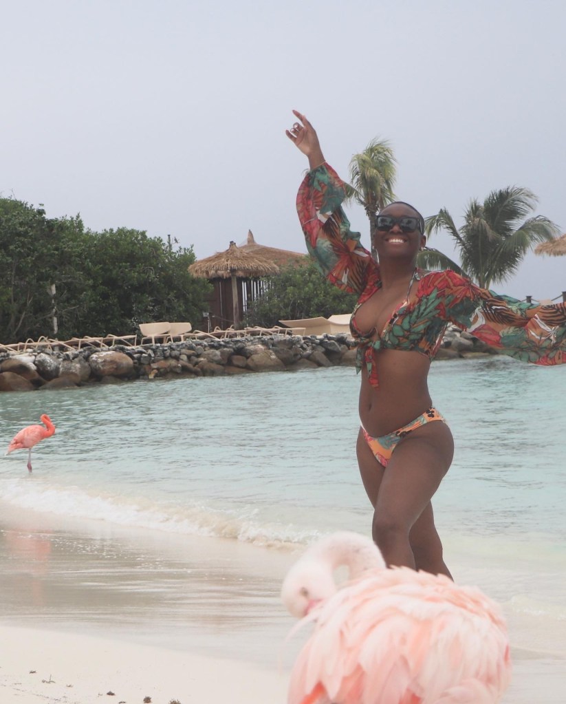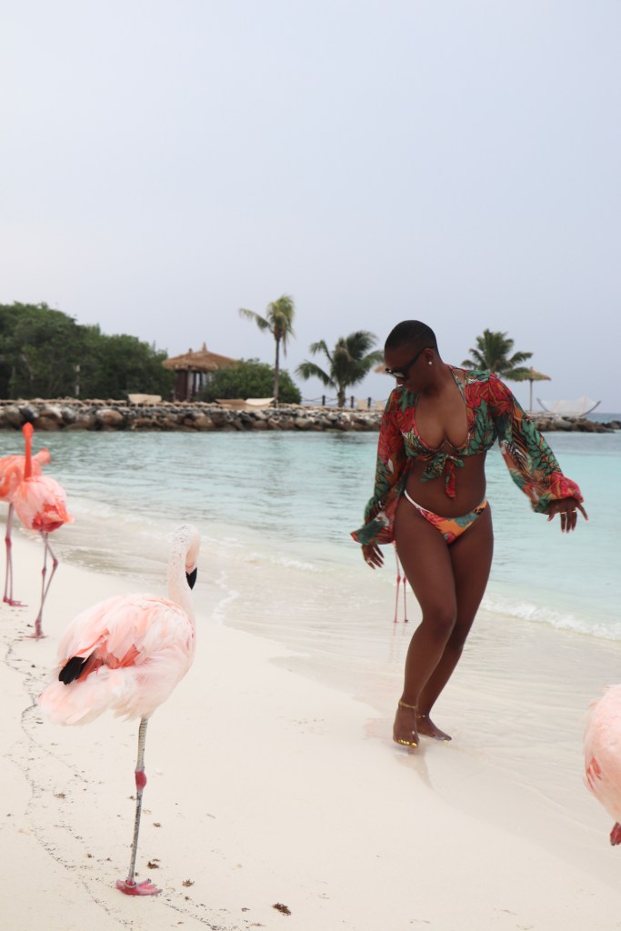 The next day was flamingo day (and I now have my luggage)! I knew seeing these beauties in real life would be one of the highlights of my trip. I had to get a $125 day pass to the private island that houses Flamingo Beach and Iguana Island since I didn’t stay at the accompanying hotel, Renaissance Wind Creek Aruba Resort. If you stay at the Renaissance hotel, then you can go back and forth to the private island anytime you want for free. The first boat is scheduled to leave at 7a so I was sitting on the pick up dock no later than 6:30a. The early bird gets the worm, or in this case, the best pictures!