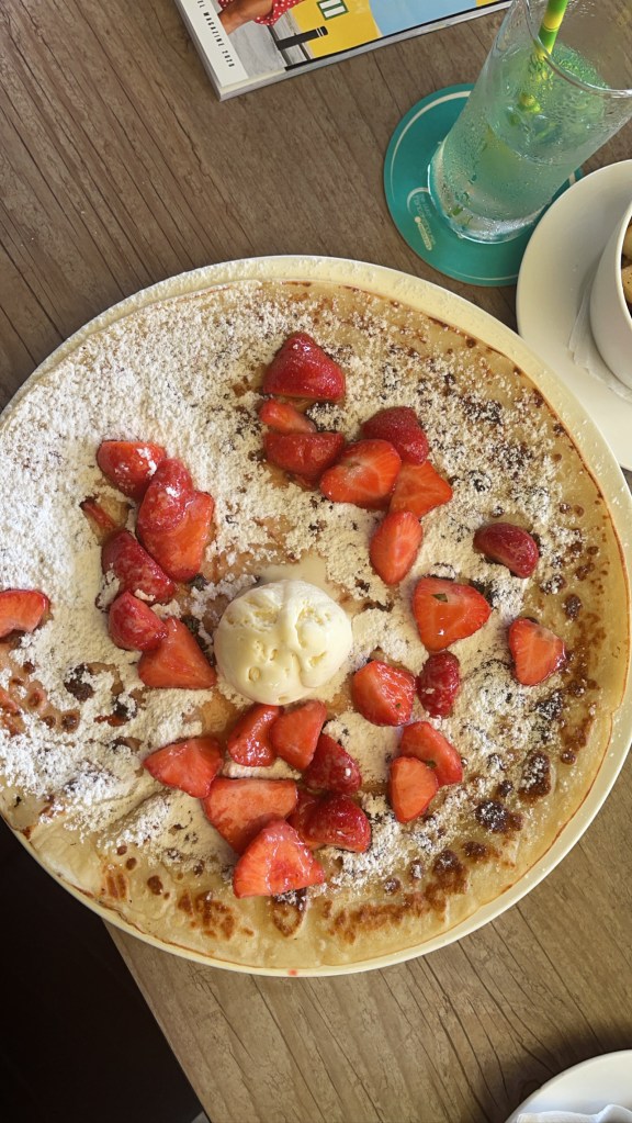 The traveling, dinner and unexpected shopping day wore me out, so I went back to the hotel to rest. I didn’t waste any time the next day and headed out early to The Dutch Pancakehouse. I tried the Strawberry Fields pancakes, and they were pretty good. Due to my lack of research the thinness and size of the pancakes caught me completely off guard. However, I would still rate this dish overall as a 10. The pancake was just sweet enough and the centered vanilla ice cream added a perfect touch. I also saw Mimi Faust from Love & Hip Hop on my flight and dining here as well!
