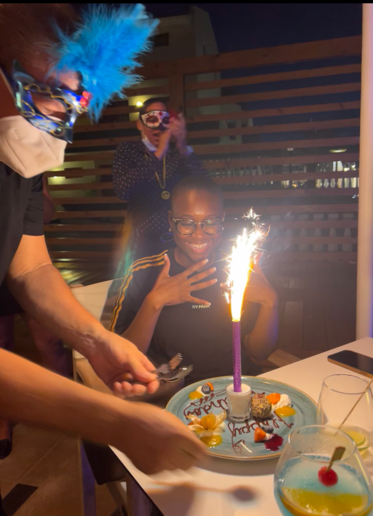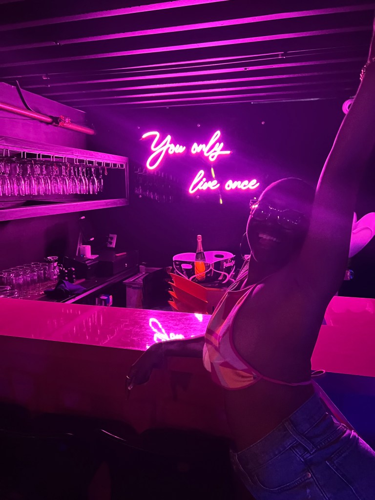 After showering and napping, I attempted to go to Black Stone Beach but soon realized we didn’t have the correct rental to make it up the rocky, narrow hill lmao. You will definitely need a Jeep at the minimum! Instead of dwelling on not making it up to the beach, I went back downtown and got my souvenir shopping out of the way then headed to the yummy Kamini’s Kitchen. This is somewhat of a hidden gem that’s clearly loved by locals, and it’s easy to see this is because of the amazingly sweet owner, Kamini. She warmly welcomed us into her establishment and was kind enough to give a backstory on the restaurant. I enjoyed the Roti Curry Shrimp that was accompanied by a side salad and white rice. Later that night I headed back to YOLO Cocktails & Tapas, but was there for only 10 minutes. The club was PACKED this time, like hold your drink in the air and walk sideways every step you take packed – definitely not my vibe.