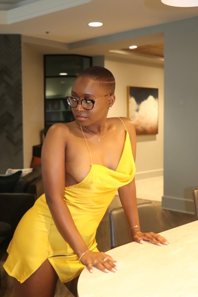 To further commemorate my birthday, I, of course, had a photo shoot! Have you ever had a dress that just made you feel like a woman? The San Marino Mini Dress from 12tribe is that dress. This beauty is the sultriest satin dress that fit me perfectly. I kept the jewelry and heels simple so the dress could do the heavy lifting. This color is no longer available, but it’s currently offered in emerald.