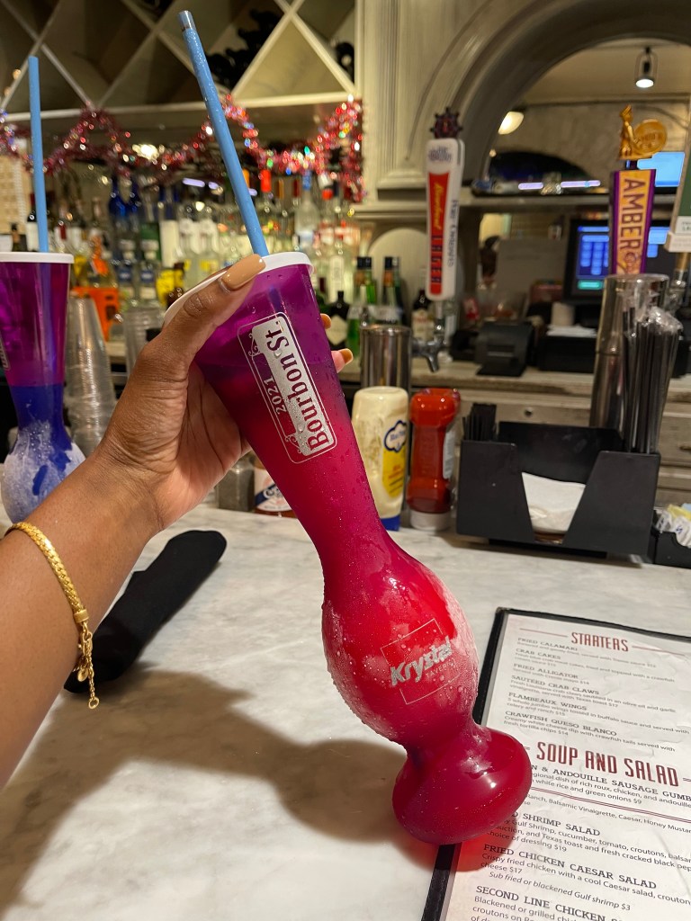 For New Years Eve 2022, I visited NOLA for the first time! Unsurprisingly, NOLA was nothing short of amazing. The infamous Bourbon St. left little to imagination as it was bursting at the seams with standard drunks being carried through the crowd and women flashing for Mardi Gras beads. I wasted no time getting showered and settled in at the Sheraton New Orleans before heading to Bourbon St for mischief. Krystal was my first stop, and I was not disappointed with the assortment of slushie options. Krystal has food too, but I didn’t want to pack on too much since my night was just getting started!