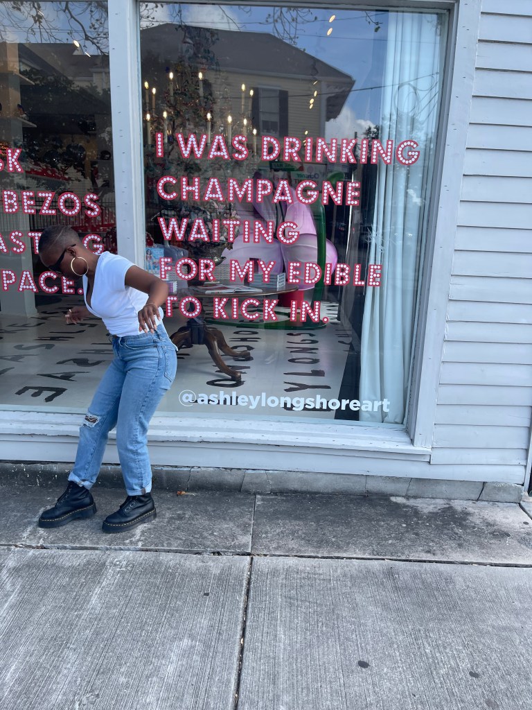 Now it was time to sight-see! I stumbled upon the Ashley Longshore Studio Gallery on Instagram when I was searching for cute areas for pictures. The studio was, of course, unexpectedly closed during my time in NOLA. However, the gallery had the cutest window decals, and I was still able to take a peek inside.
